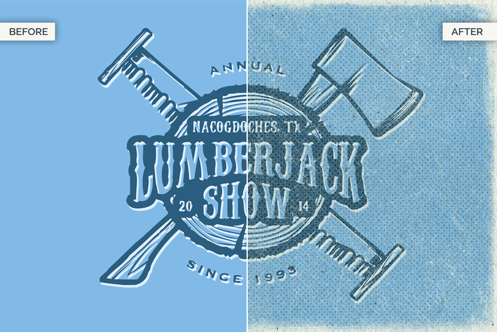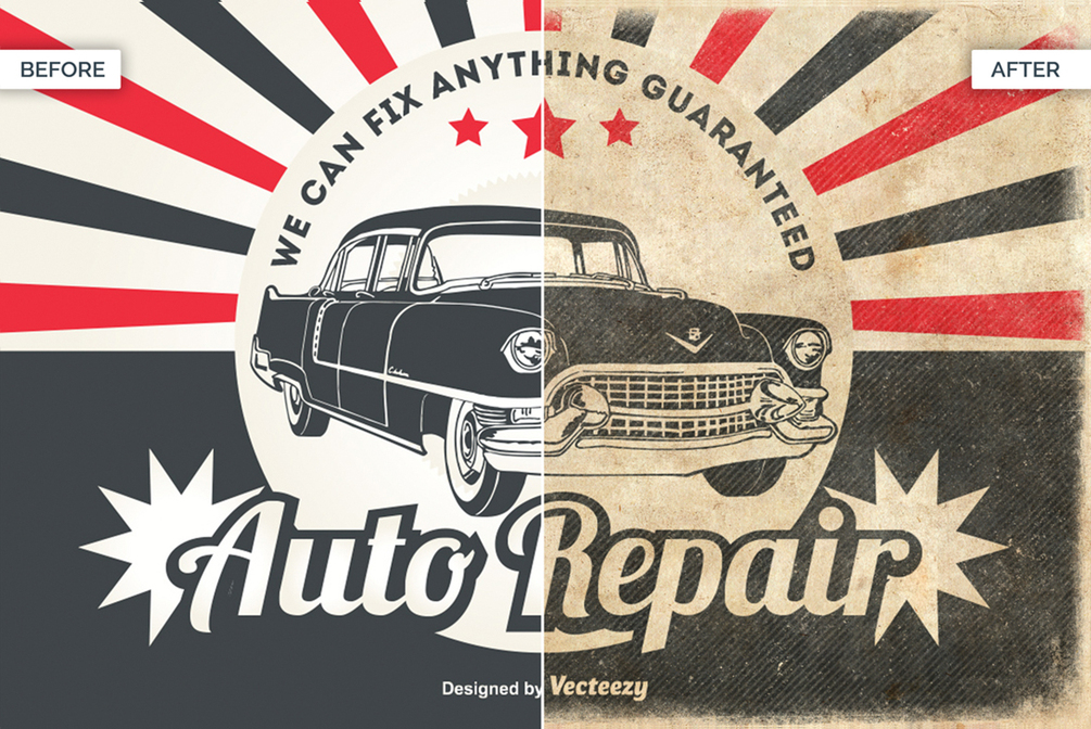 This is NOT an action. It is a comprehensive pack containing many tools dedicated to designers, allowing them to create professional, realistic retro, vintage, and grunge design styles in seconds.